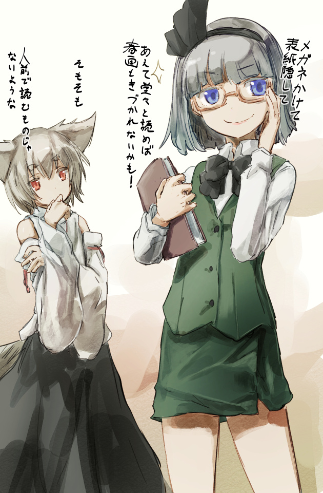 自宅で読んでるとルナサさんが怖いし、何より幽々子さまに「妖夢はやらしいのね」と思われるのがイヤなので、アレコレ工夫しておられる妖夢さん。本人は幽々子さまにだけはバレてないと確信しておられるらしく。 なお椛さんは「妖夢の彼女、すぐ殴るし、怒るし。上手くいってないんだろうな。第一、胸が無いのは妖夢の趣味じゃないもんね」くらいの認識なので、妖夢さんの春画集めを咎めたりはされない模様。