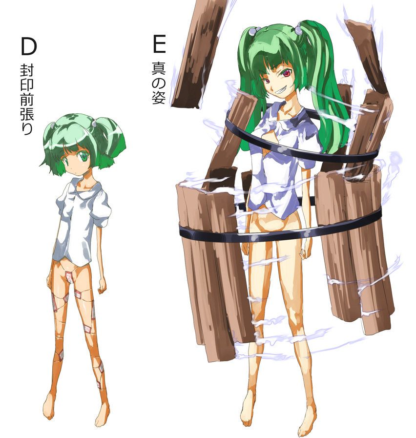 つまり「キスメは桶に封印された妖怪」である。と結論づけるものであり、その封印の札を解き放つと桶は瓦解し、キスメは真の力と、真の姿を取り戻すものである、とする。