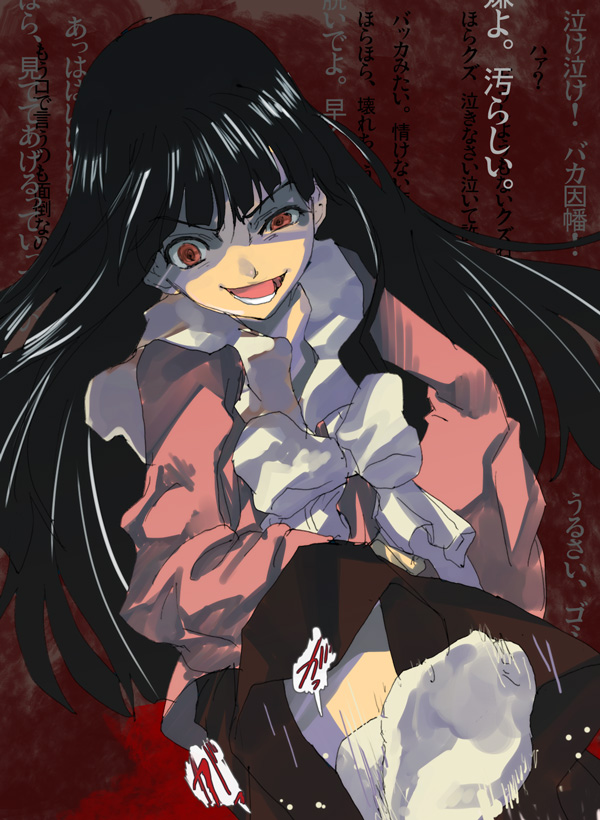 生きて帰れたら、私が個人的な趣味で書き上げたこの「泣キ叫ブ橋姫」(パルスィさんが地霊殿の4人+勇儀+ザコ妖精無数に壊され、精神崩壊させられる作品。86p。イベント売り無し)を特別にさs Caution!! この原稿は灼き尽くされました Caution!!