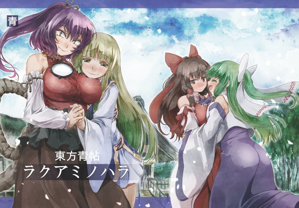 さあれ! それでは告知させていただきますよ!東方青帖・ラクアミノハラ タタリ神×軍神本 46p 会場価格500円 全盛期のムキムキ神奈ちゃんさまと、ドロドロタタリ神時代の諏訪子さまとの、夢現のお話です。そしてもうひとつは東方青帖・両のさざめき 厄神×豊穣神本 36p 会場価格500円 愛され系芳醇女神さまと、えんがちょ系厄神さまのふんわりしたお話。先に言っておきますが、お一人様はあんまり関係ない。以上二冊をご用意しております。あと、手持ち在庫少々。当日は「あー20a」にてお待ちしております! よろしければどうぞ!さて、ではこれから全判サイズの水彩作業ですおのれー。