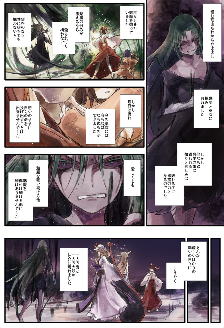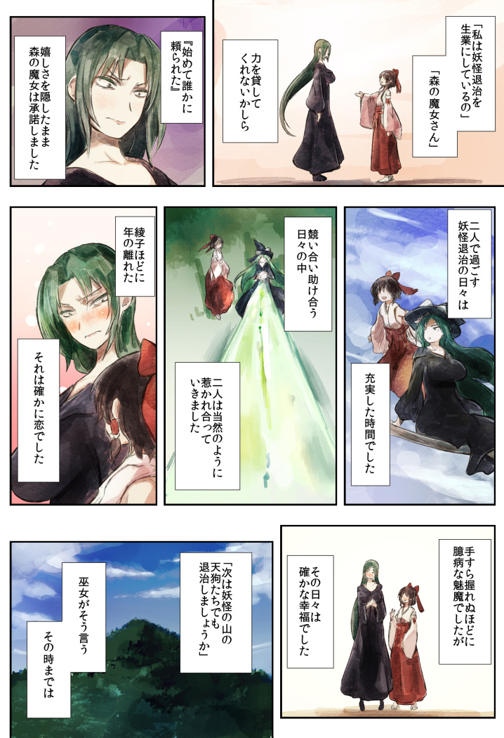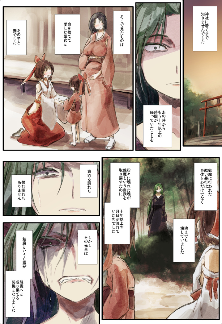 見やれ、不幸がさんざめく 一応フォローしておきますと、巫女さんはその後も一人で魅魔さん救出のため挑み続け、返り討ちにされ続けました。ある日「あのオバサンなら死んだよアハハ」と聞かされた時に心が折れて、その後に・・・ といった経緯です。