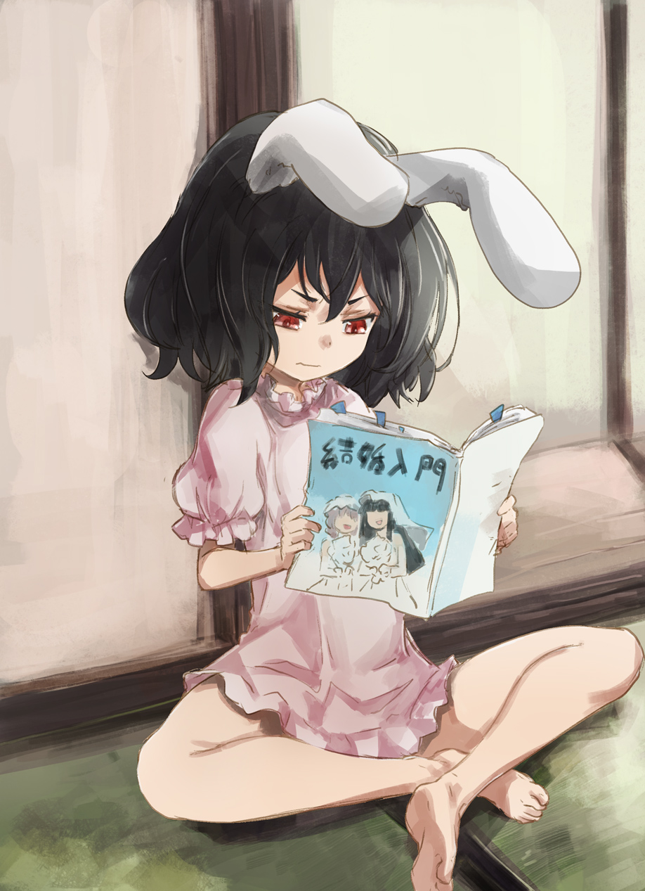 幸せそうなヒメサマと永琳はどうでもいいけど、そんな二人を羨ましそうに眺めているウドンゲのために式のひとつでも上げてあげたいウサな腹黒ウサギ。 ただし準備等はすべて下っ端因幡に押し付ける腹積もり。
