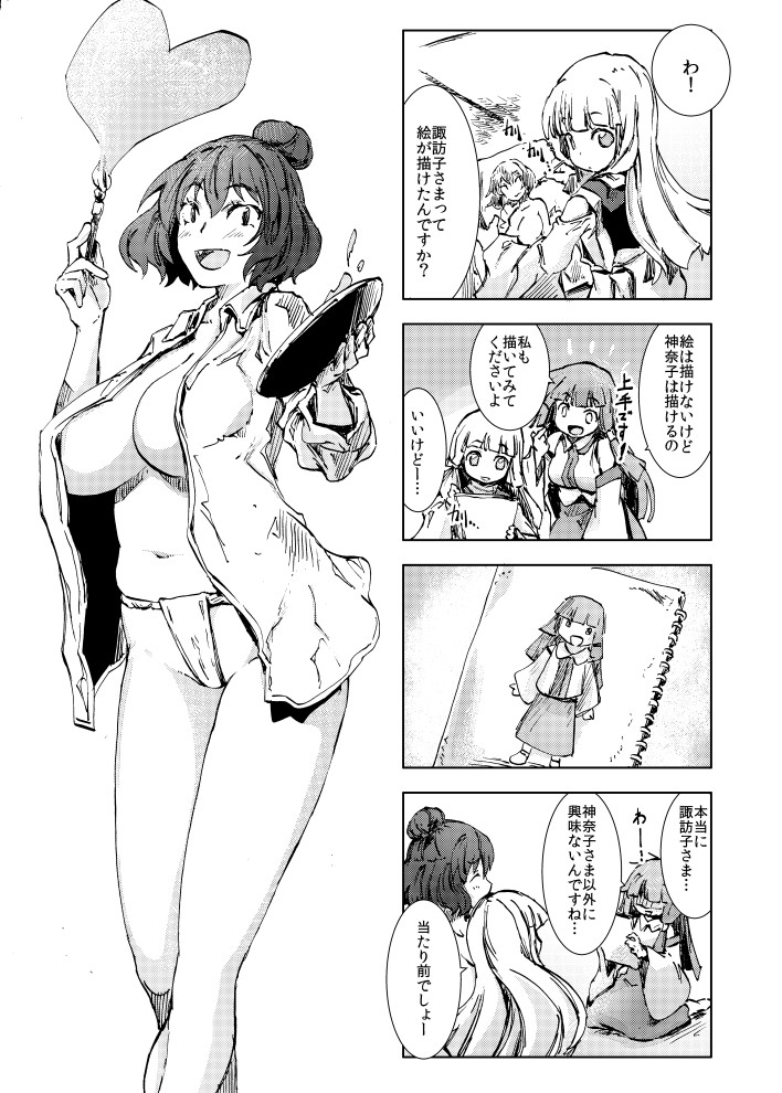 GA終了の生きる気力低下に伴い、別件の締め切りを放り出し「ヨハネが締め切りに仕えるのではない、締め切りがヨハネに仕えるのだ!!」と天に言い放ちシャーリーのアトリエPlusを買いに走り出てしまう可能性を抑えるためには神奈子さまを描くほかないのだ。 南半球出ているのに厚着に見える。そう、神奈子さまならね。神綺さま、魅魔さん、神奈子さまあたりには”ぶらじゃー”という概念が無いと思われます。