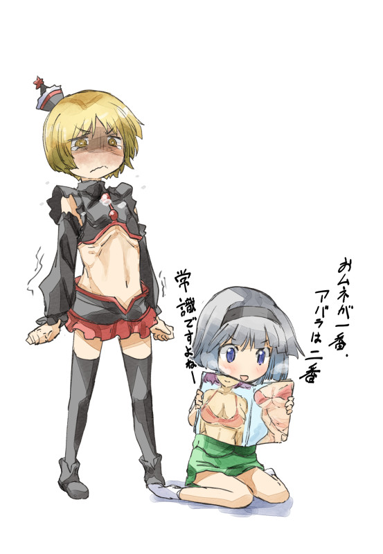 >アバラが支持されにくいという事実まことに遺憾であります。ヨハネさんの所には素晴らしいアバラ娘様がたくさんいるというのに。たくさんいるというのに。大きかったり、柔らかかったりするだけが美に非ず。どヒンヌーでも、アバラがあるなら! しかし かのじょは きょぬーにむちゅうだ!! 頑張って用意したアバラガン見せ・フンチラ服も効果なし。そう、妖夢さんならね。