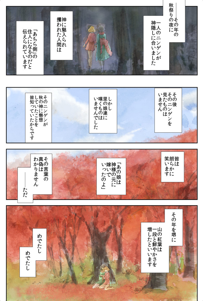 一人で紅葉狩りをしている折に、まだ穣子さんを雛さんに取られる前。