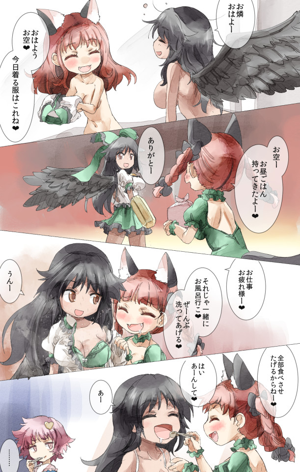お空さんが毎日真面目に仕事してるのは、お燐さんに褒めてほしいからで、