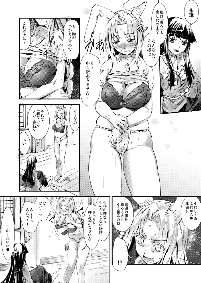 先生帰ってきてー。 早く帰ってきて そのままサイズのてゐの服無理矢理着せられてる永琳 描いてー。