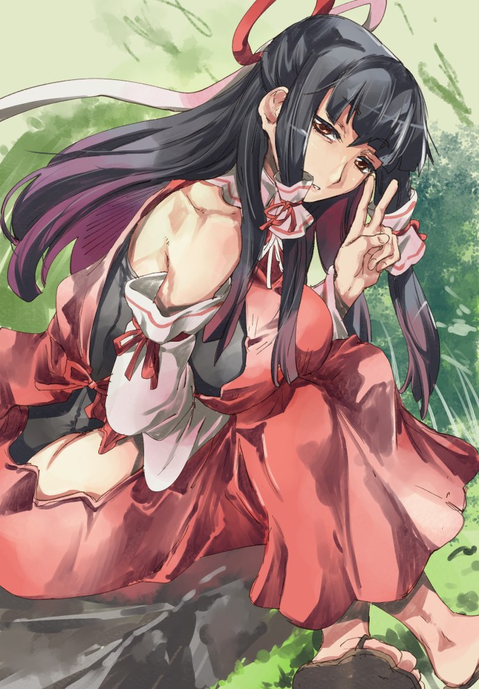 >先代巫女本委託って決定事項ととらえてよろしいですか?! …ヨロシイデスカ?長身きょぬームキムキ無口天然さんじゅうななさいッ娘というアレな属性をふんだんに詰め込んだ、極めて人を選ぶアレな方がここでの先代様です。それでもよろしいのでしたら!