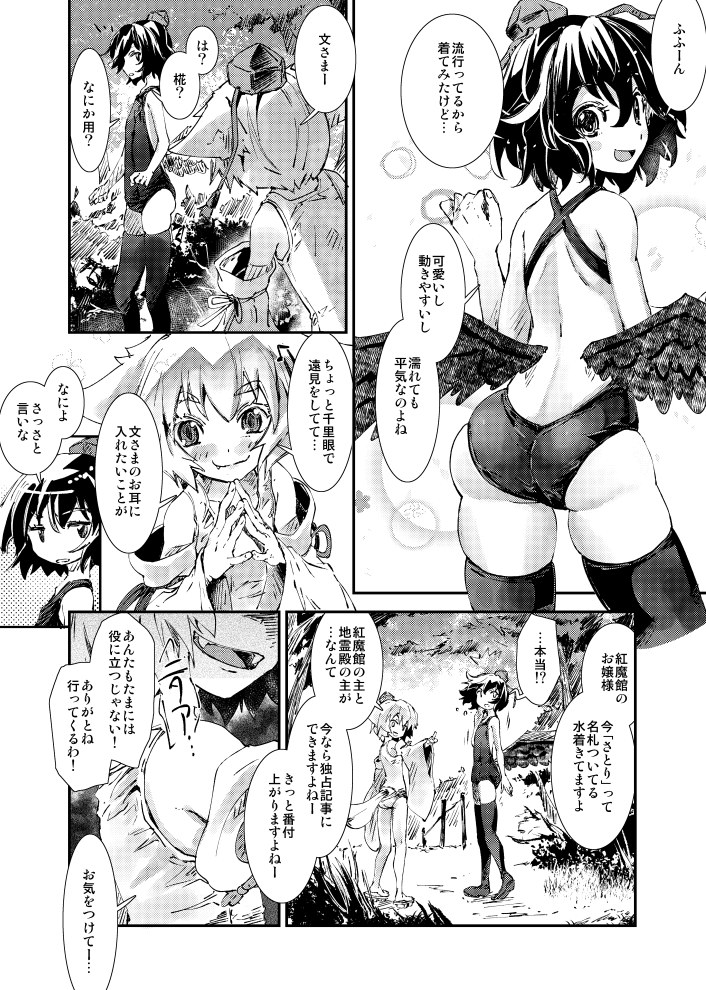 当然この後「はたて様! 文さまが紅魔館のお嬢様の水着姿撮りに行っちゃいましたよ!