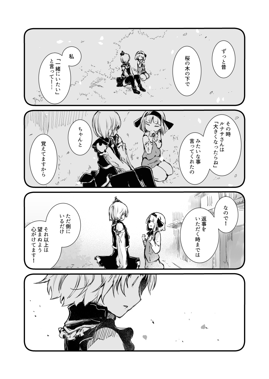青帖後の妖夢さんとルナサさんマンガでも描きたいのですが 時間がないので、妖夢さん服のルナサさん。