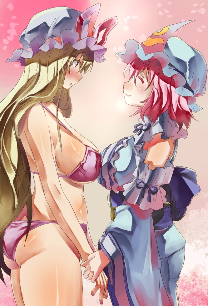 紫さまが垂れてるのは、幽々子さまのお胸のポイント・オブ・チェリーブロッサム(品性のオブラート)と合わせるためですよ。きっと。