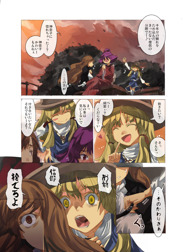 デート・二刻目 もう何も、恐くない。 いいじゃないですか、魔法熟女で純愛したって。 デート・三刻目 諏訪子さまいる限り、奇跡も魔法も、あるわけない。 夢は、ここまでだ。 断っておきますが、私はハッピーエンド主義者ですよ。ええ。