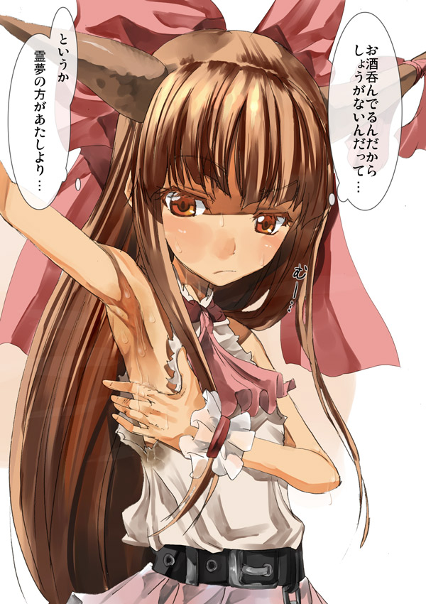 >萃香ってよく肘曲げて腰に手当ててるけどさ、あれってもしかして蒸れやすい腋を気にしてのポーズなんじゃね?