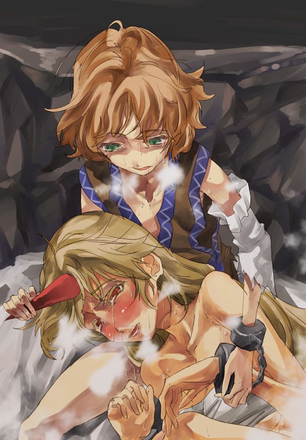 嫉妬に狂ったお嬢様に地下室に監禁され、ヒギィな事される人妻メイド。それを見せられる門番。体の壊れた咲夜さんと、心の壊れた美鈴さんで羽付き子を囲んで仲良しこよしよ。美しかろ? ヒッヒッ ヒヒヒヒッ