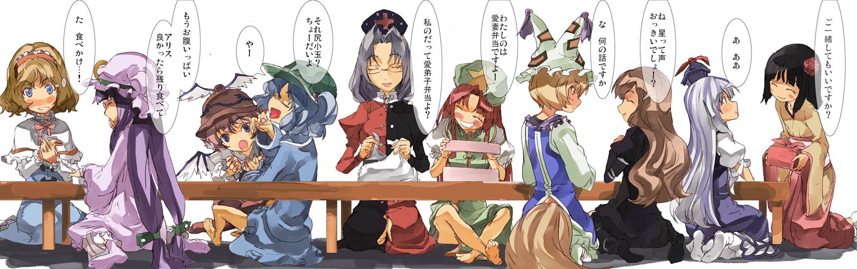 歴史を教えるけーね、文字を教えるあきゅー、薬学を教えるえーりん、歌を教えるみすちー、数学を教える藍、理科を教えるにとり、魔術を教えるパチュリー、裁縫を教えるアリス、武術を教えるめ-りん、作法や道徳を教える白連……おいおい、寺子屋はパラダイスじゃねえか。「○○センセー」とか言って生徒が甘えてくるんだぜ?
