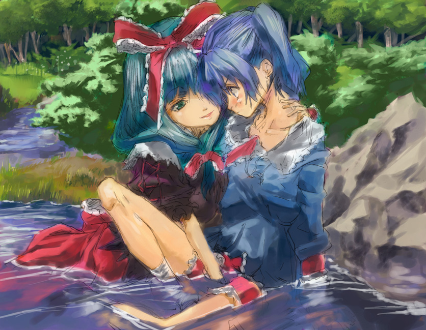 >衝動を押さえ切れずにペインフロー状態になっている雛を優しく受け入れるにとり。